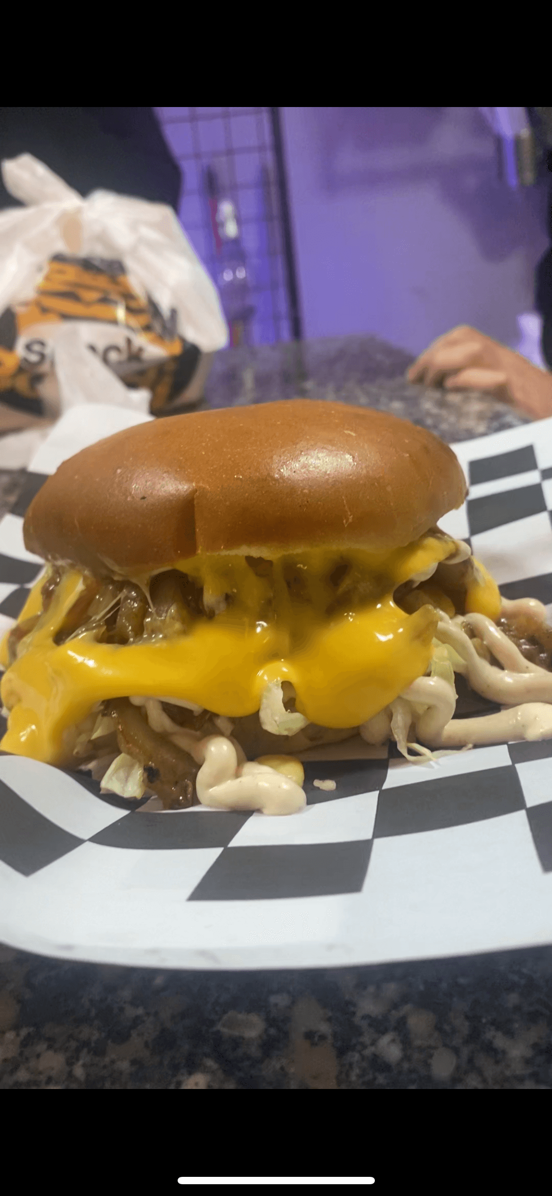 صوص كوكتيل, خس, بصل, بندورة, ذرة, تشدر, 2 بيف برغر, 2 قطع تشدر, سلايس بيبيروني, موزريلا ستيكس, تشدر, باربيكيو