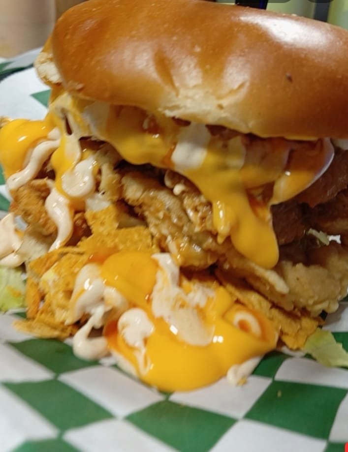 صوص, خس, بندورة, هاليبينو, 2قطع ياتي موزاريلا . 2دجاج مقلي, مكسيكن صوص, تشدر